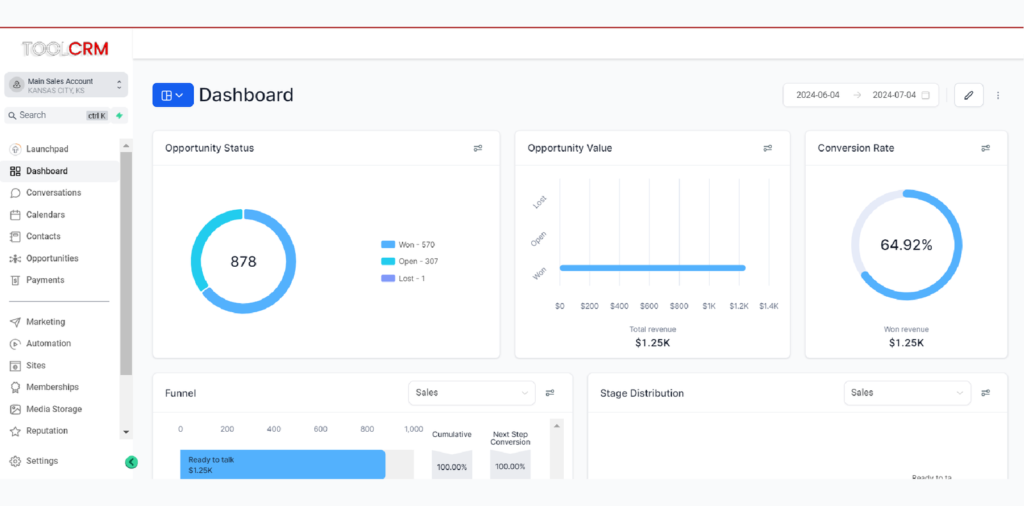 ToolCRM provides all essential tools for managing leads, websites, funnels, calendars, and more, essential for maintaining customer relationships.